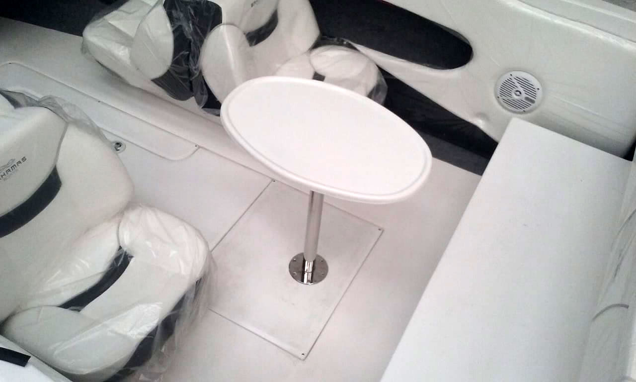 Viene de serie con tanque de inox de 100 litros ofreciendo gran autonomía, tablero envolvente asiento triple enterizo en popa apto para uso solárium, piso matrizado con antideslizante y tapas de guarda abisagradas, barral de Ski inoxidable, tonneau de proa, herrajes de norma, luces reglamentarias y leds de cortesía interior, alfombrado lateral , tapicería integral a tono, y mucho más.
